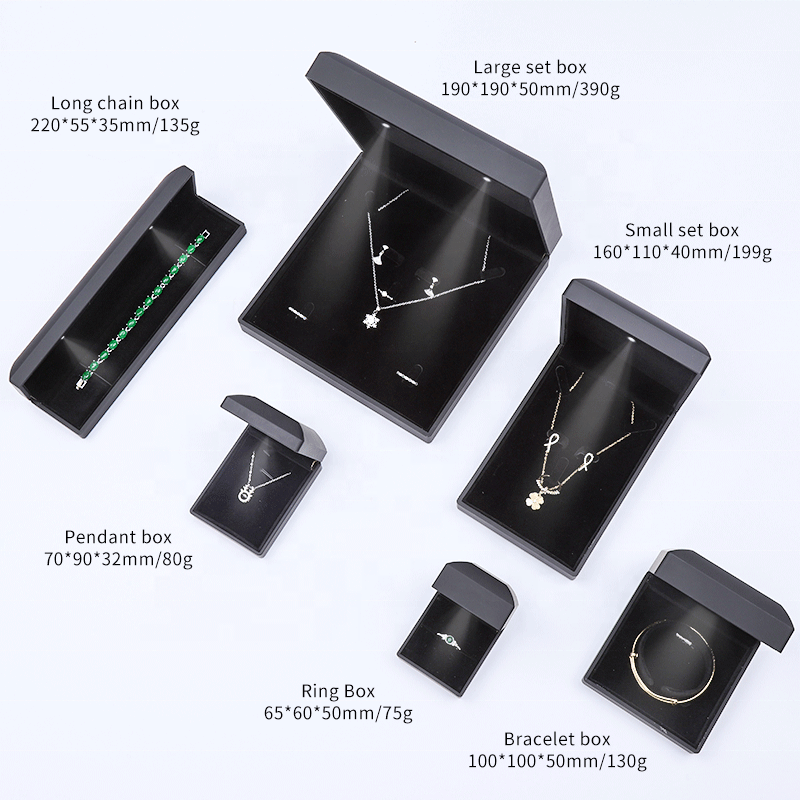 Wholesale Custom Logo Jewelry Necklace Bracelet Packaging Box With Lighting Black Plastic Led Earrings Ring Jewelry Box