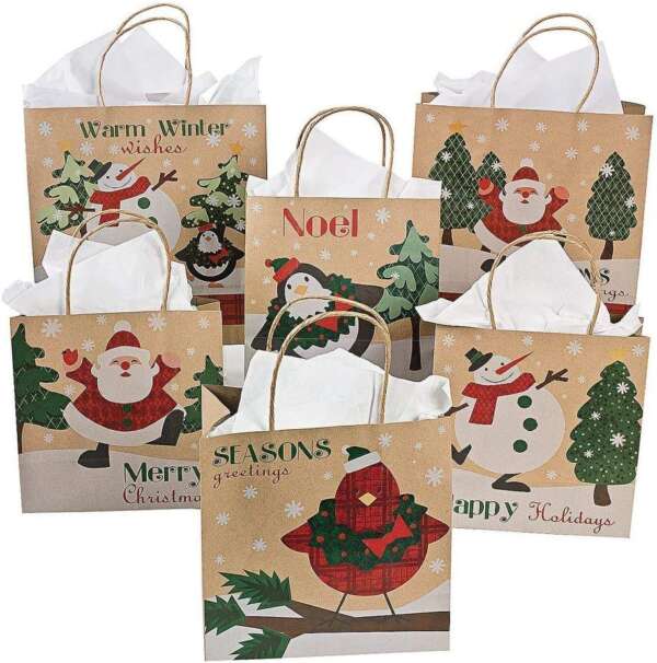 Top Seller 2024 Hot Selling Custom Christmas Bag Gift Wrapping Kraft Paper Bag 8 Color Flexo Printing Food Grade Material Accept