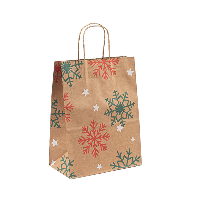 Custom Christmas Kraft Shopping Paper Packaging Eco-Friendly Luxury Brown Kraft Gift Bag Supermarket Use Custom Printing Option