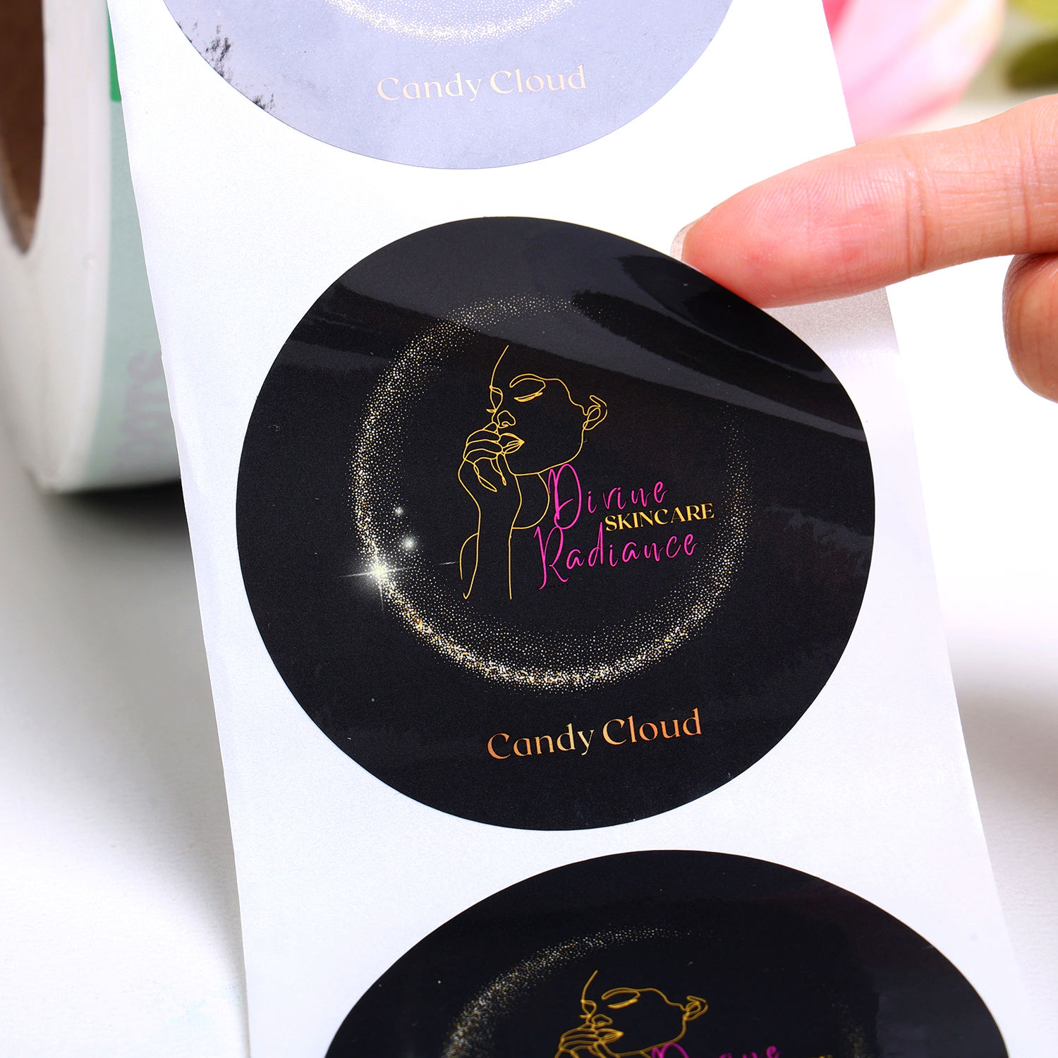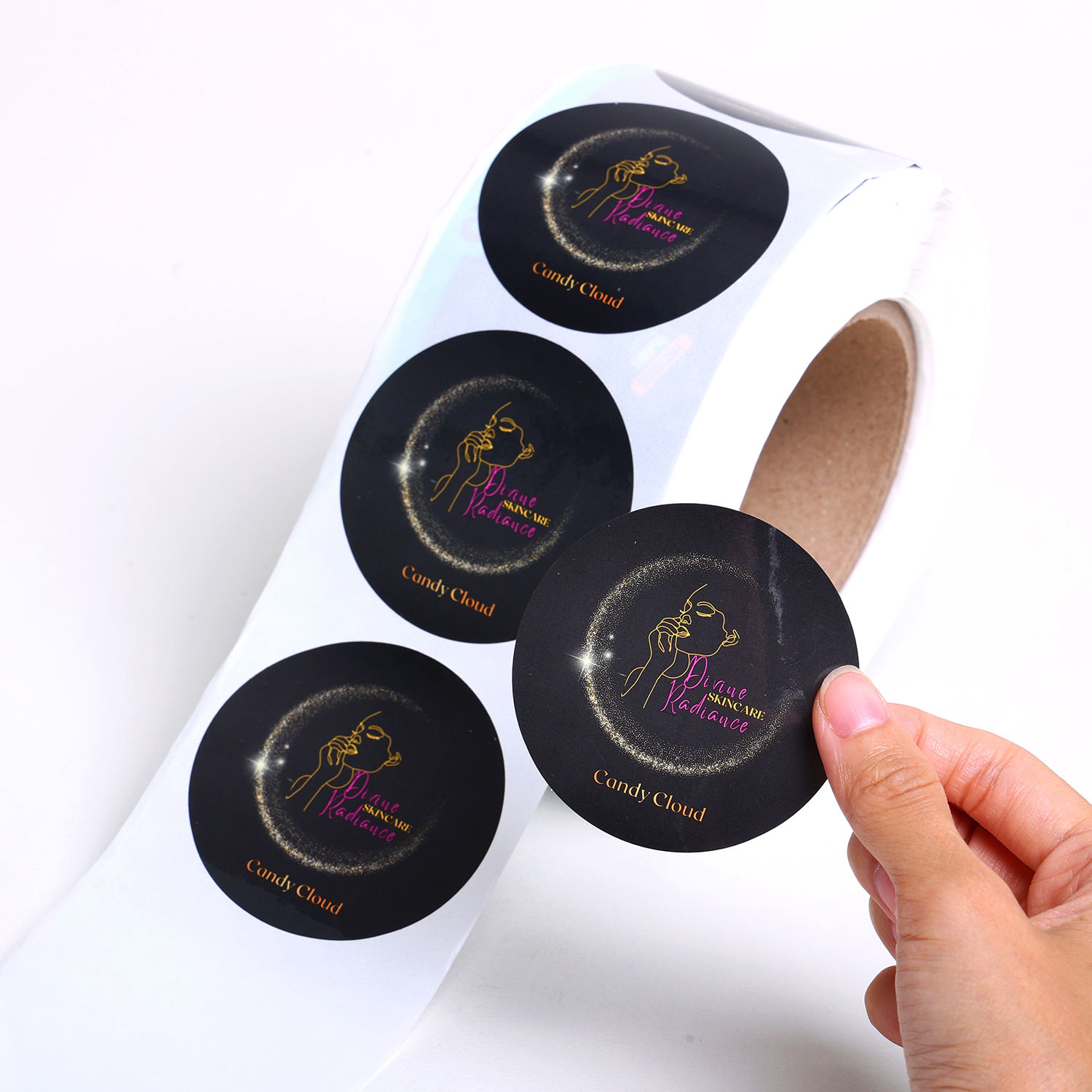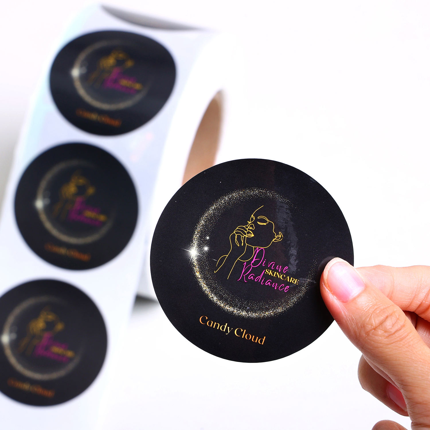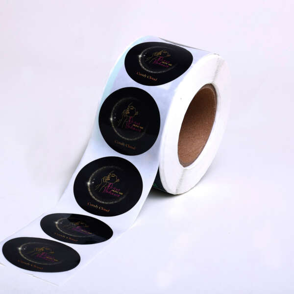 Custom Logo Round Shape Waterproof Self Adhesive Glossy Roll Packaging Stickers Labels