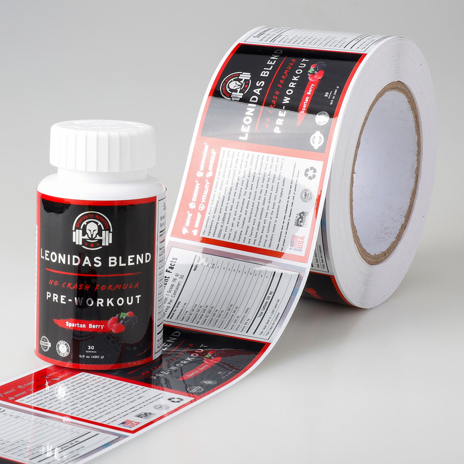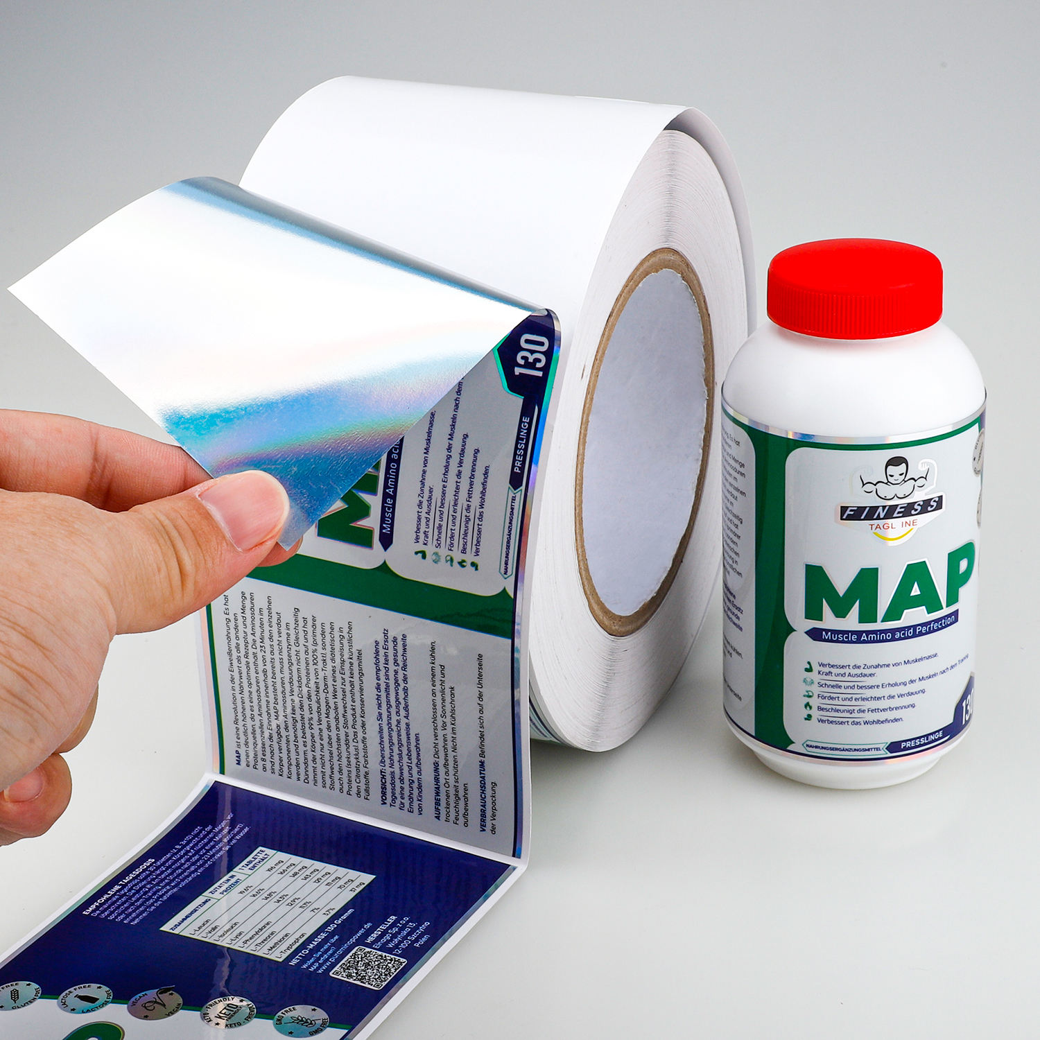 Custom Printing Healthy Pharmaceutical Product Matte Nutritional Supplement Gold Foil Spot UV Bottle Roll Sticker Labels