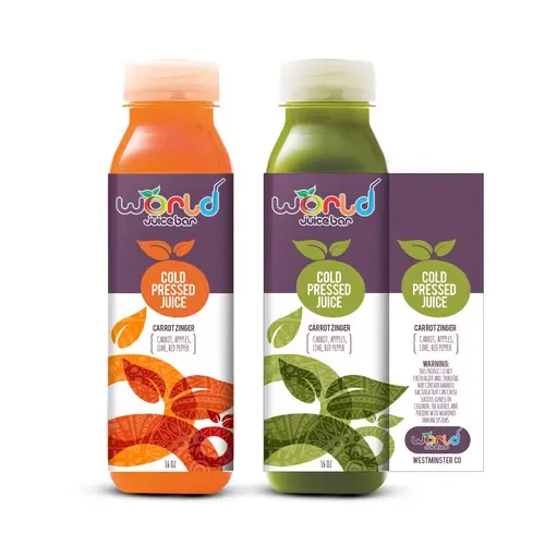 Silk Screen Printing Custom Adhesive Waterproof Food Drink Fruit Juice Bottle Sticker Labels For Beverage Plastic Bottles
