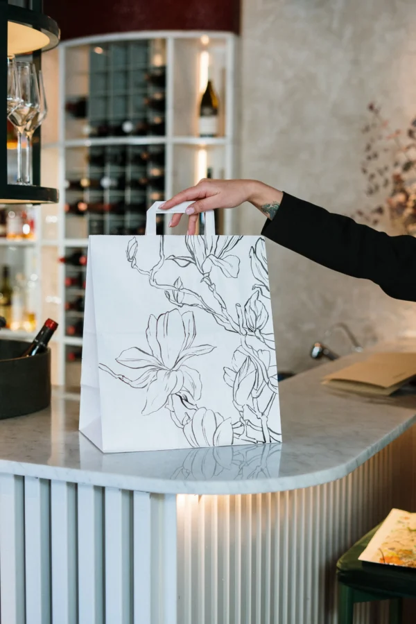 Custom Eco-Friendly Kraft Paper Bag with Flat Handle for Shopping Promotions Supermarkets